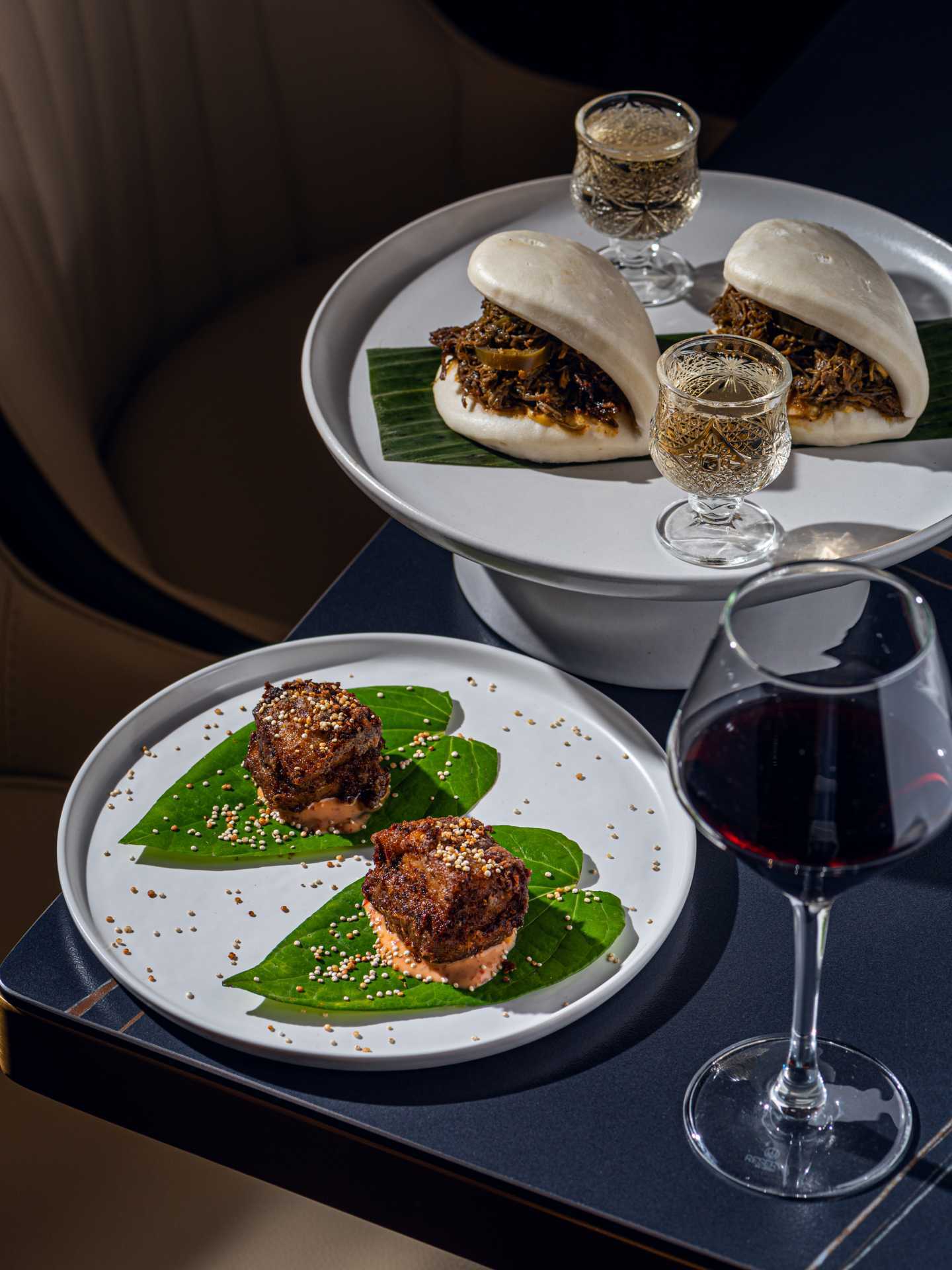 Next door, behind a moodier curtain, is Bar Cart, a speakeasy-style cocktail lounge helmed by Montreal mixology star Andrew Whibley (Cloakroom Bar). Here, guests can nibble on smaller bites and sip inventive signature cocktails, like the Espresso Ghost, a silky nitro espresso martini served with a foamy flourish.