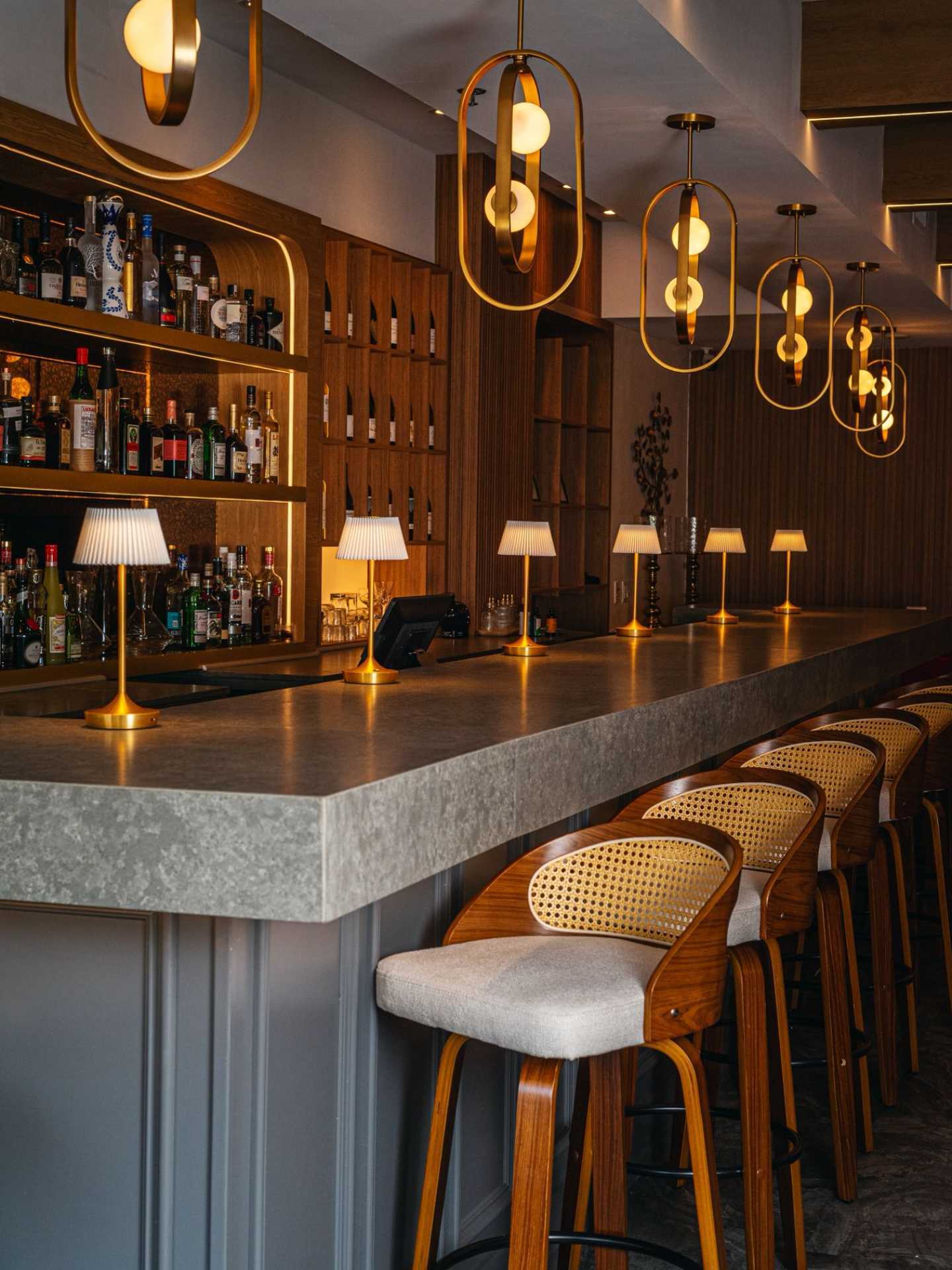 "Oro" means "gold" in Spanish, and during “Season One, Episode One,” there's plenty of the lush colour throughout the modern vintage glam space. With arching ceilings, crushed velvet and rattan furniture, wood-panelled walls and curving cut-outs, the space is soothing, sophisticated and a little eccentric.