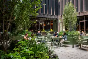 Rain or shine, Black + Blue's fully enclosed and heated patio is a secluded hideaway smack dab in the middle of the Financial District. It's recessed from the street and hidden in a courtyard filled with trees and plants, where it's easy to forget you're in the heart of the city. The daily afternoon happy hour has the best deals on sharable snacks, sushi and drinks, but evenings offer a more sultry atmosphere for dining on their wide selection of steak cuts, show-stopping table-side dishes and seafood.