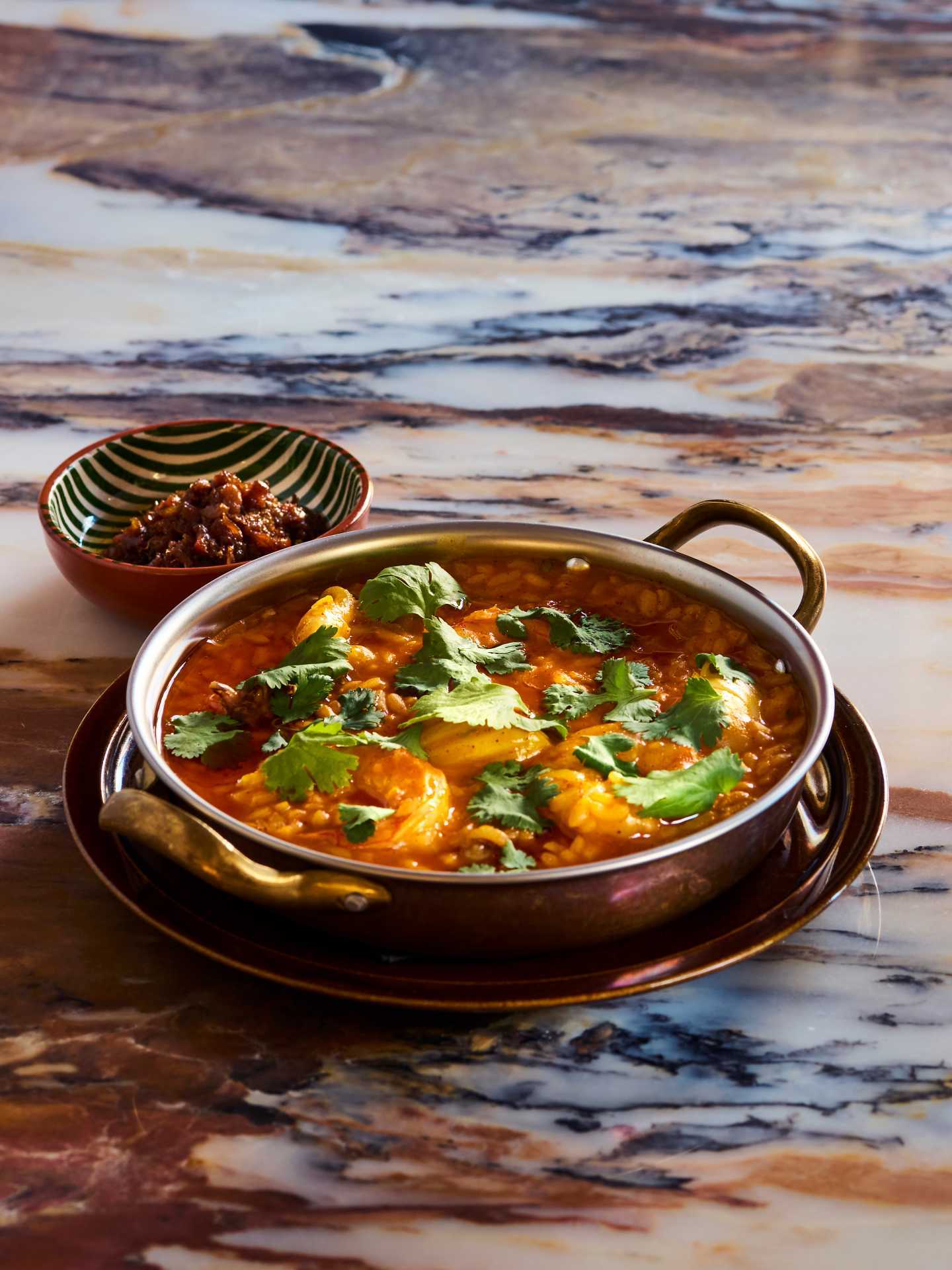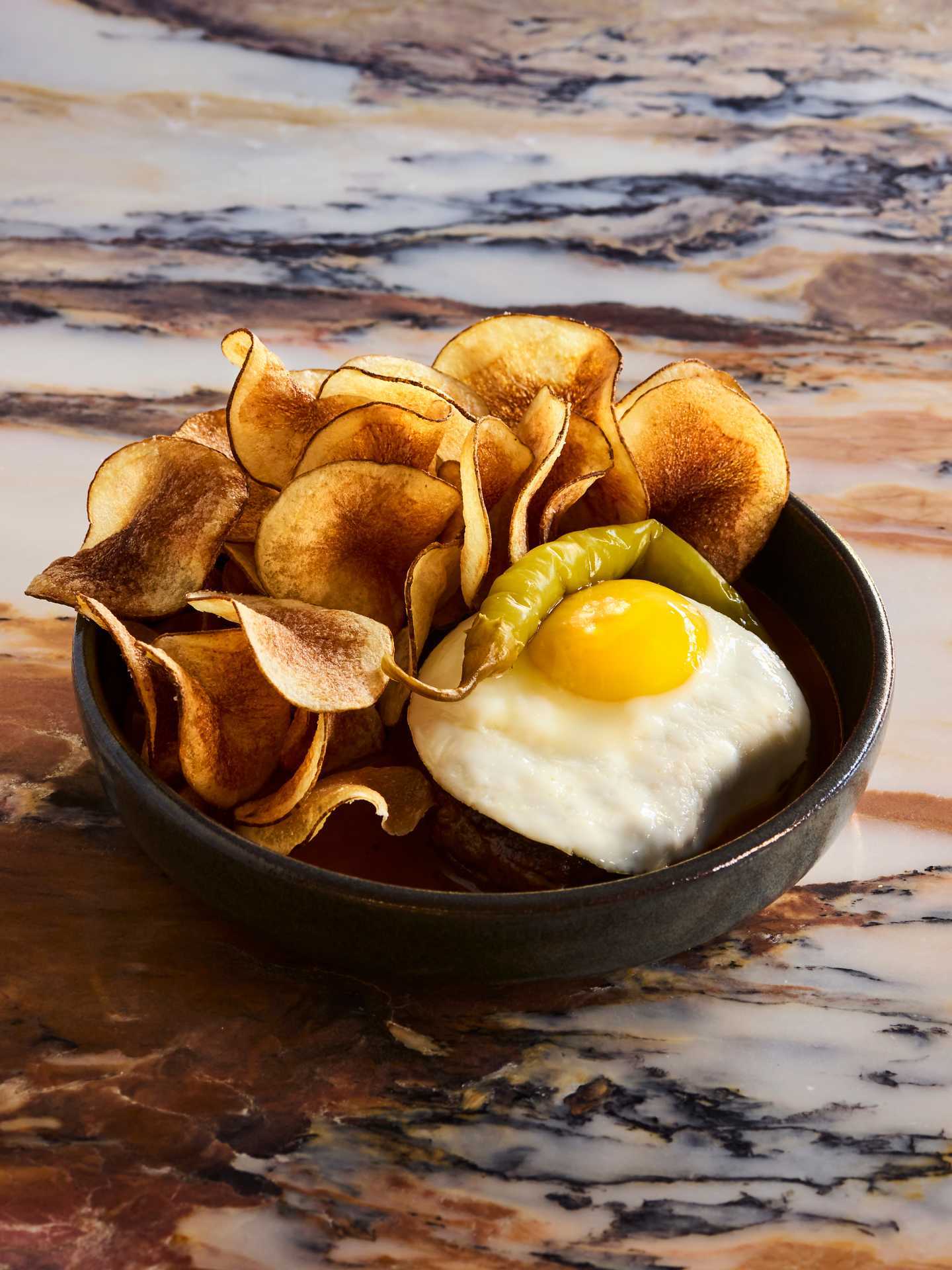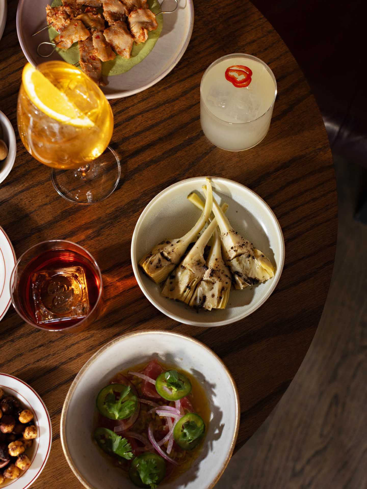 Take the elevator up to the ninth floor of the W Toronto, where the doors open onto Skylight, a spacious boho oasis. Lush greenery and drapes cascade from the ceiling in the large open space full of cozy, burnt orange and deep purple chairs and loungers. Outside, the rooftop patio is wrapped in the twinkling lights of skyscrapers. If you can snag one, the rounded, birdcage-style booths draped in greenery are luxuriously private while still being part of the patio energy. Tuck into chef Olivier La Calvez’s menu of Mediterranean flavours and creative cocktails in the alluring atmosphere.