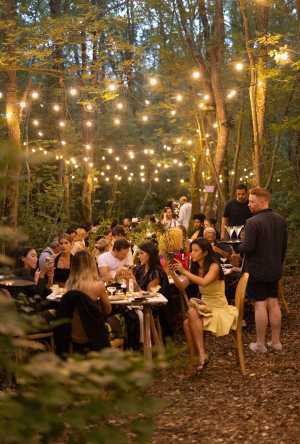 That evening, we dine at one long table under an outdoor ceiling of twinkly lights and crystal chandeliers. The Elemental Dinner, prepared by chef Franck Putelat of the two-Michelin-star La Table de Franck Putelat, takes us through the four elements of nature that inspired Grey Goose Vodka and surround us at The Nest: wheat, water, mountain and air.