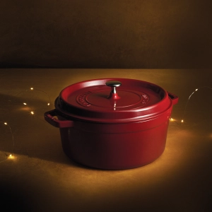 Cast iron is a sturdy piece of kitchenware that will last you a lifetime if you treat it well. It's also a gorgeous gift, with Staub's rainbow of gorgeous colourways — we love the cocotte in vibrant cherry.