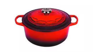 This collectible piece was made using a special Maple Leaf mould and hand-enamelled in Le Creuset’s bold Cherry colour. As a tribute to Canada’s 150th birthday, exactly 1,867 of these French ovens were produced and the mould was destroyed afterwards (we can only assume this was done with an appropriate amount of drama). Each oven’s stainless steel knob features a sequential product number between one and 1,867.