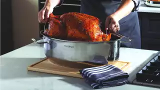 Paderno's Multi Roaster fits turkeys up to 22 pounds and it's got a few clever design features that you'll appreciate when you've got a dozen other things to prep for a festive meal.