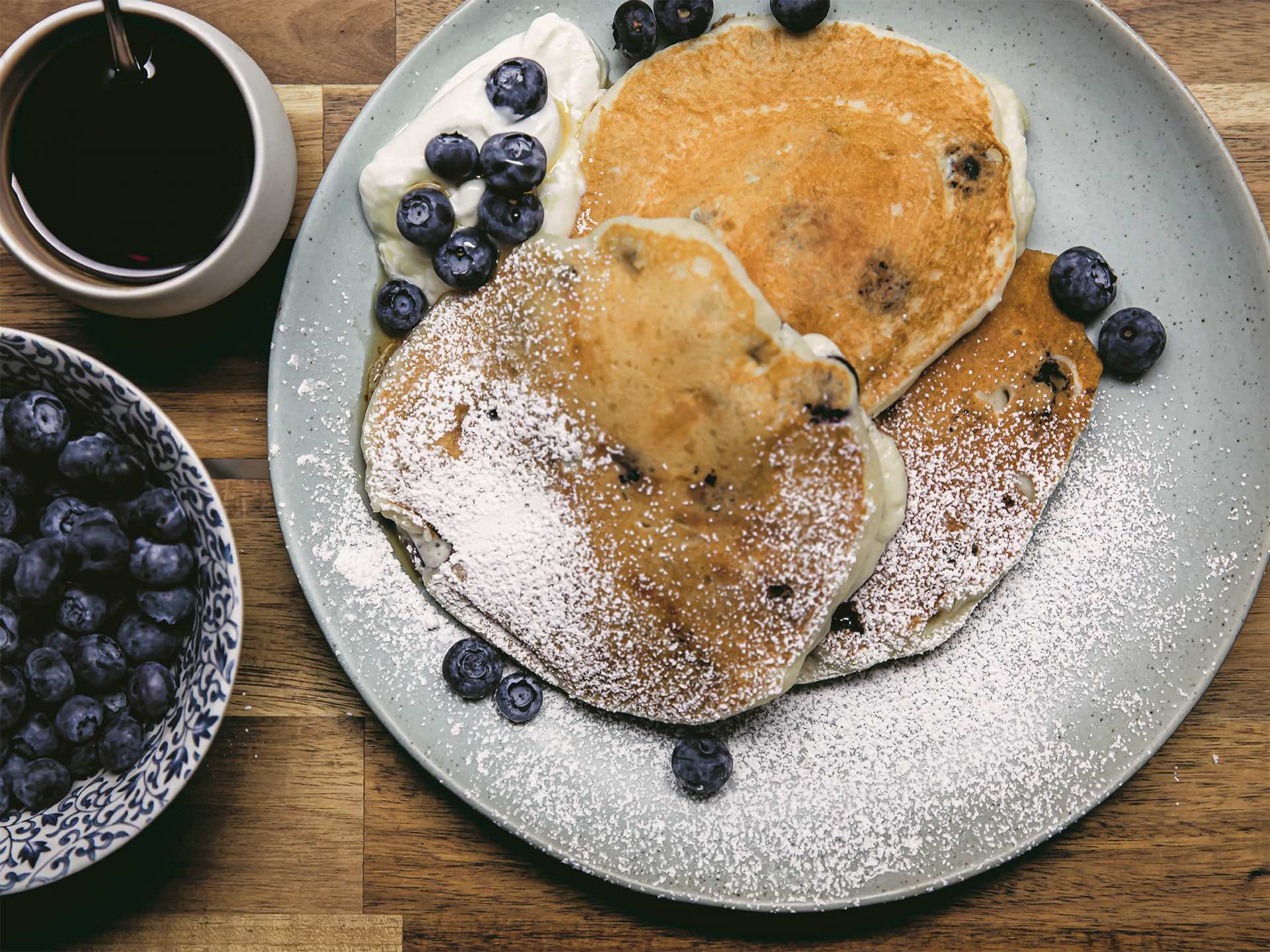 Blueberry kefir pancakes