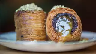 Note: Kataifi is a cheese pastry soaked in a sweet syrup. It can be purchased at Middle Eastern stores.