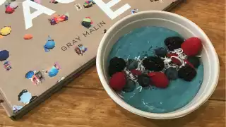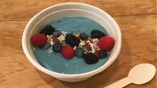 Blend all the ingredients fully, except the Blue Majik. Blend in a couple of ice cubes if you prefer a thicker consistency. Add a teaspoon of Blue Majik powder and blend again until the colour is even. Add toppings as desired and enjoy.