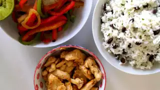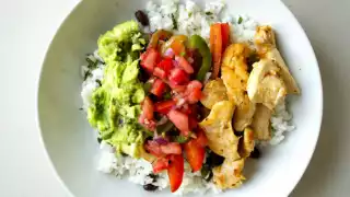 Combine the spices, salt and pepper in a small bowl. Warm the canola oil in a pan over medium heat. Add the chicken strips and let them sizzle until nearly cooked through, about four to five minutes. Sprinkle with the spice mixture, then stir until the meat is evenly coated and the spices just become fragrant. Add ¼ cup of water and continue cooking. Once the chicken is fully cooked, remove it from the pan and sauté the onion, pepper and garlic. Add a little more canola oil if needed. Create your burrito bowl by layering cooked rice, black beans, and sautéed peppers. Top with chicken and your favourite garnish. We love cheese, sour cream, guacamole, pico de gallo, chopped fresh cilantro, a squeeze of lime juice and a dash of hot sauce.