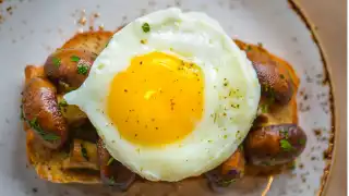 In a non-stick frying pan, melt the butter over medium-high heat. When the butter sizzles and foams, gently add the eggs one at a time. Turn the heat down to medium and fry gently until whites are set and yolks are still soft. Season to taste.