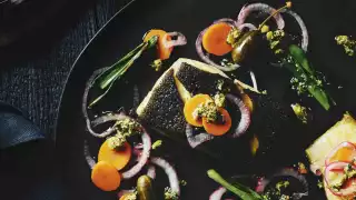 Pan-fried until crispy-skinned, delicately flavoured wild black cod is drizzled with a piquant sauce brimming with fresh herbs, carrots and PC ® Black Label Green Olive Pesto. A duo of colourful, quick pickled onions plus charred green onions completes this elegant dish.