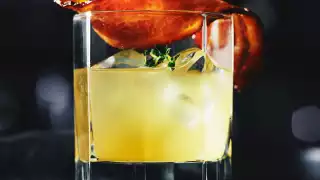 Garnished with a creative twist on bacon, this flavourful White Peach Bourbon Shrub with Candied Bacon cocktail recipe combines bourbon and fresh thyme with a tart–sweet duo of PC® Black Label White Peach Condiment and PC® Black Label Simple Syrup Cocktail Mixer. Bourbon and bacon meet their match in this candied cocktail.