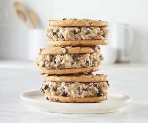 You can now enjoy Pillsbury's Safe To Eat Raw Cookie Dough baked into warm and melty chocolate chip cookies, or by the spoonful as a cold, sweet treat. Or combine them in these mouthwatering cookie dough sandwiches.
